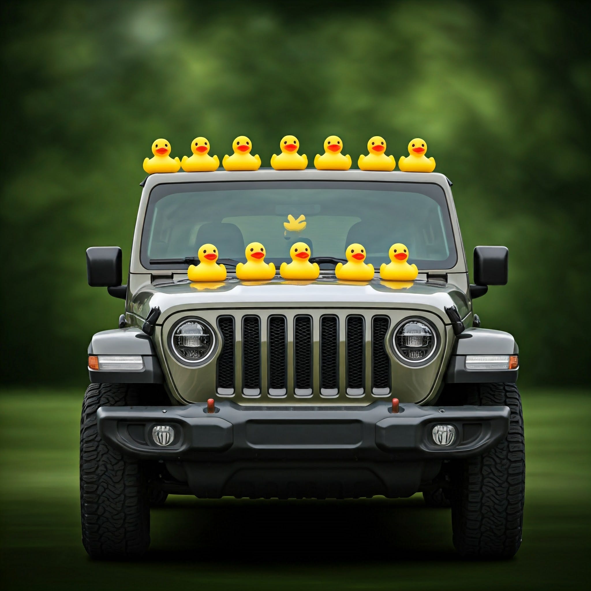A Jeep owner purchases small rubber ducks.